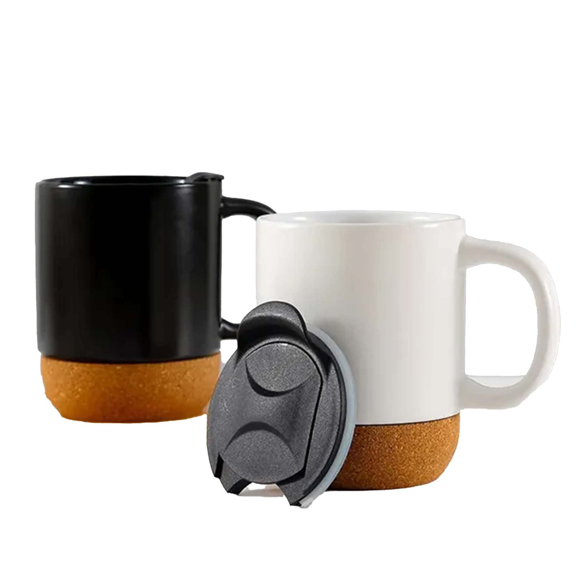 Ceramic Coffee Mug with Cork Bottom and Lid