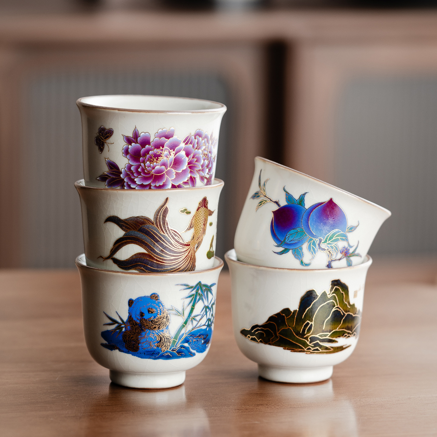 - Individual themed cups like "Golden Fish Full Hall," "National Beauty Peony," "Longevity Peach," and the majestic "Thousand Miles of Rivers and Mountains."