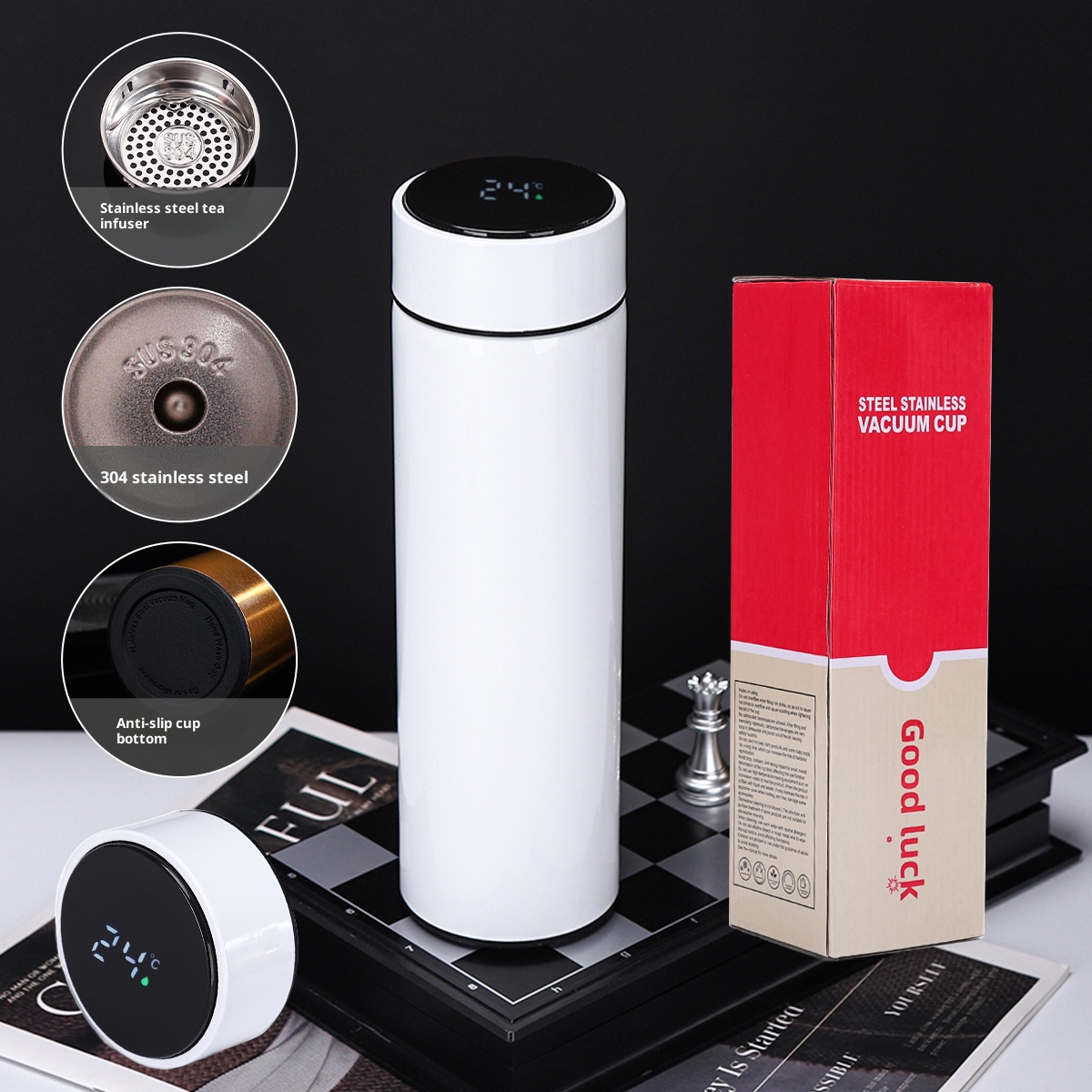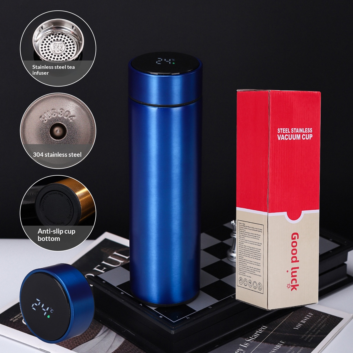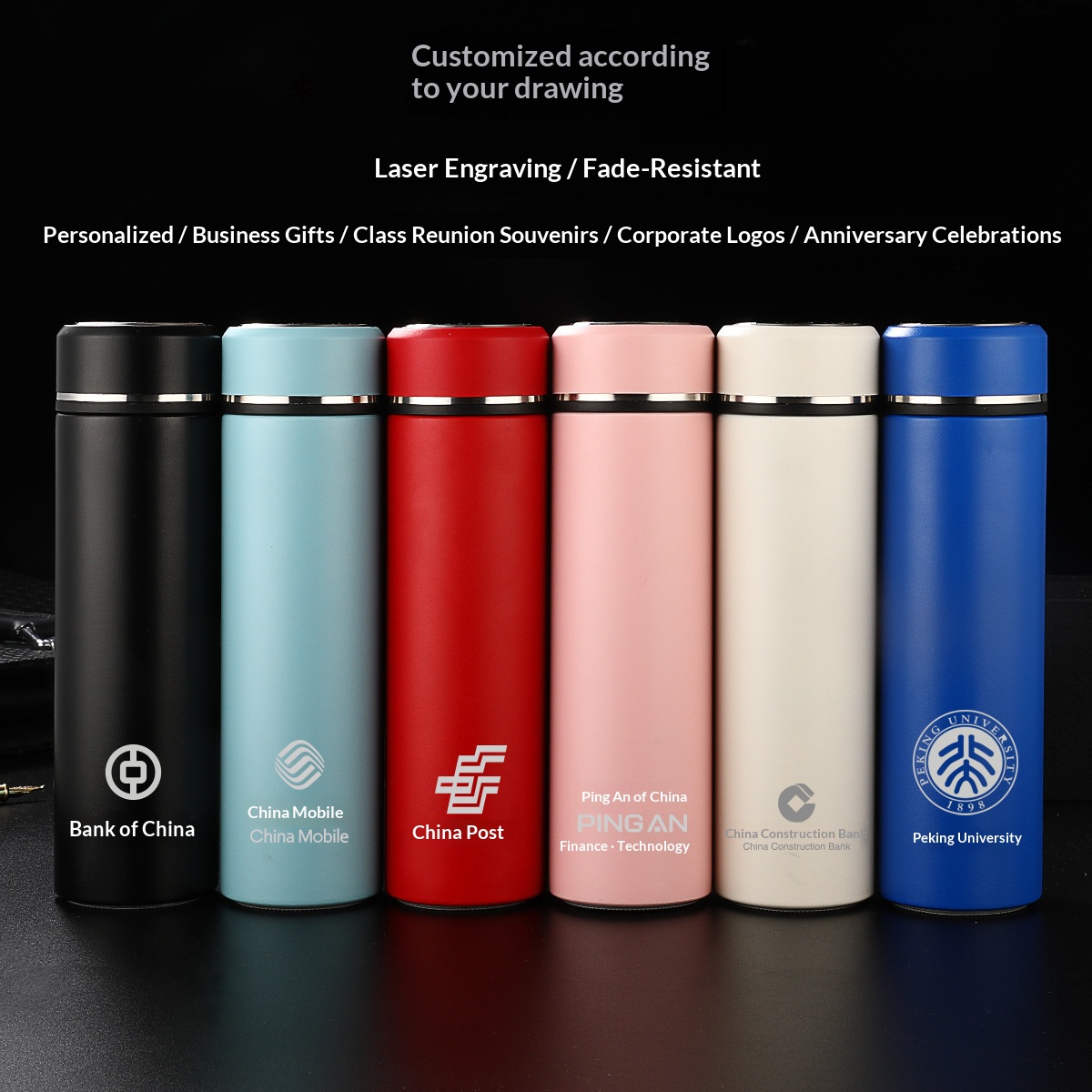 Model: YD-013 Inner Material: 316 Food-Grade Stainless Steel Outer Material: 304 Stainless Steel Capacity: 500ml (approx. 16.9 oz) Insulation: 12-24 Hours (Hot/Cold) Special Features: Digital Temperature Display, Removable Tea Infuser, Leak-Proof, Anti-Slip Base Style: Modern Simple / Straight Wall Cup Color Options: Multiple, including Smart Display models in Matte Blue, Gentleman Black, China Red, Transparent Blue, Ivory White, Jewel Red, Transparent Pink, Steel, Pink, Gold; Standard models in Black, White, Red, Green, Pink; and more. Customization: Logo Laser Engraving Available Packaging: Individual Color Gift Box