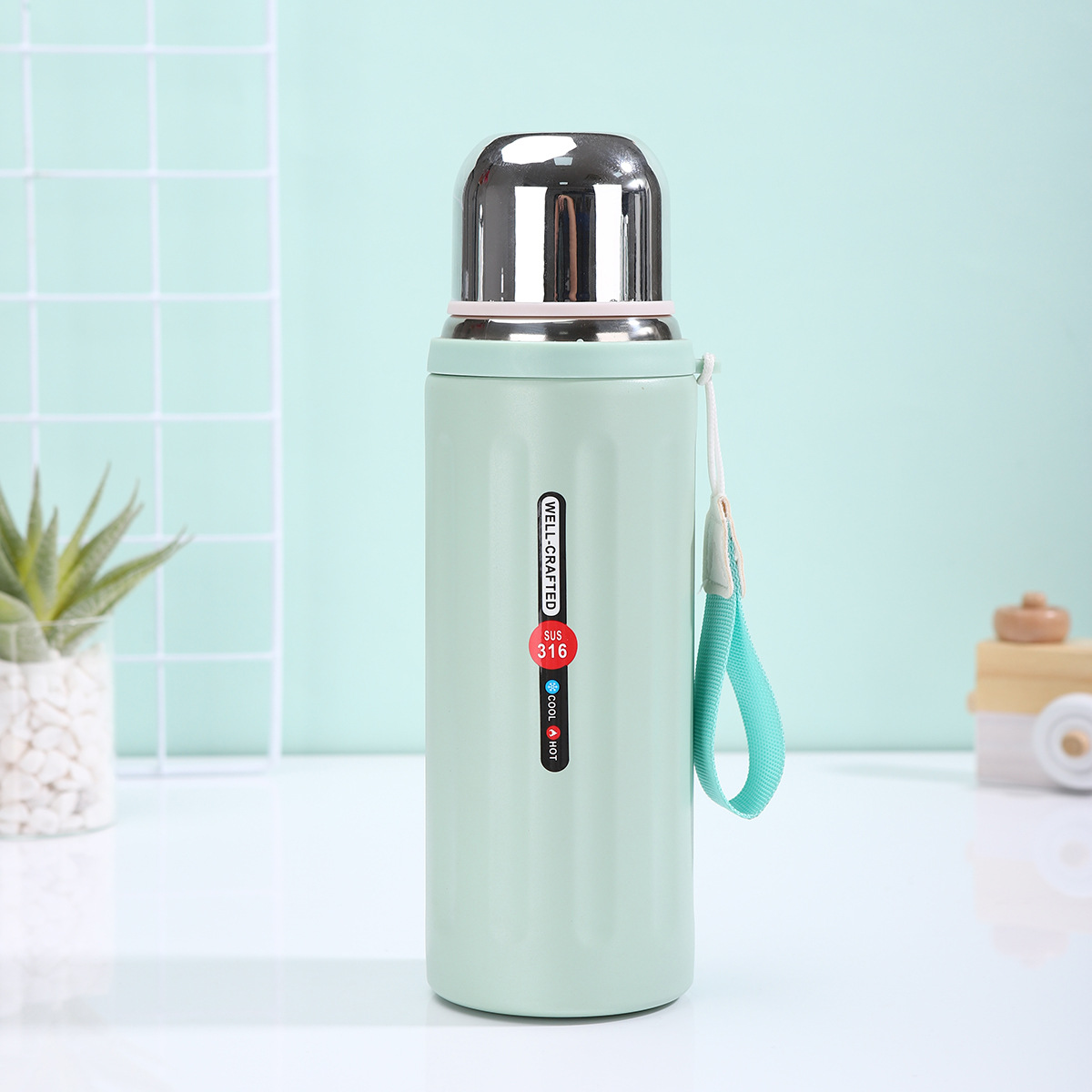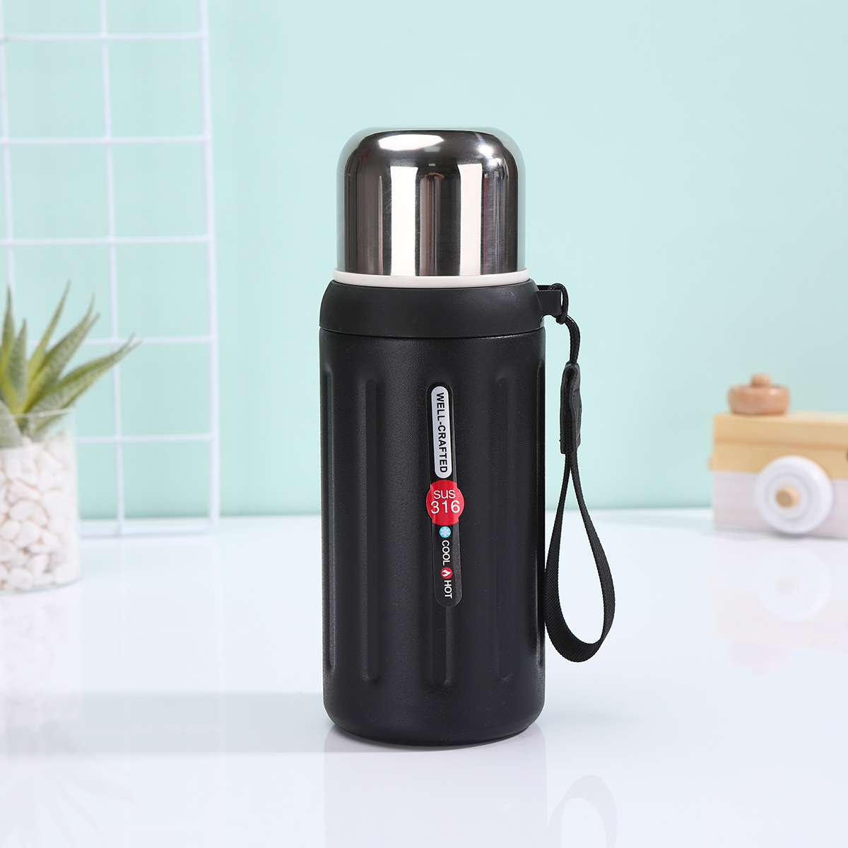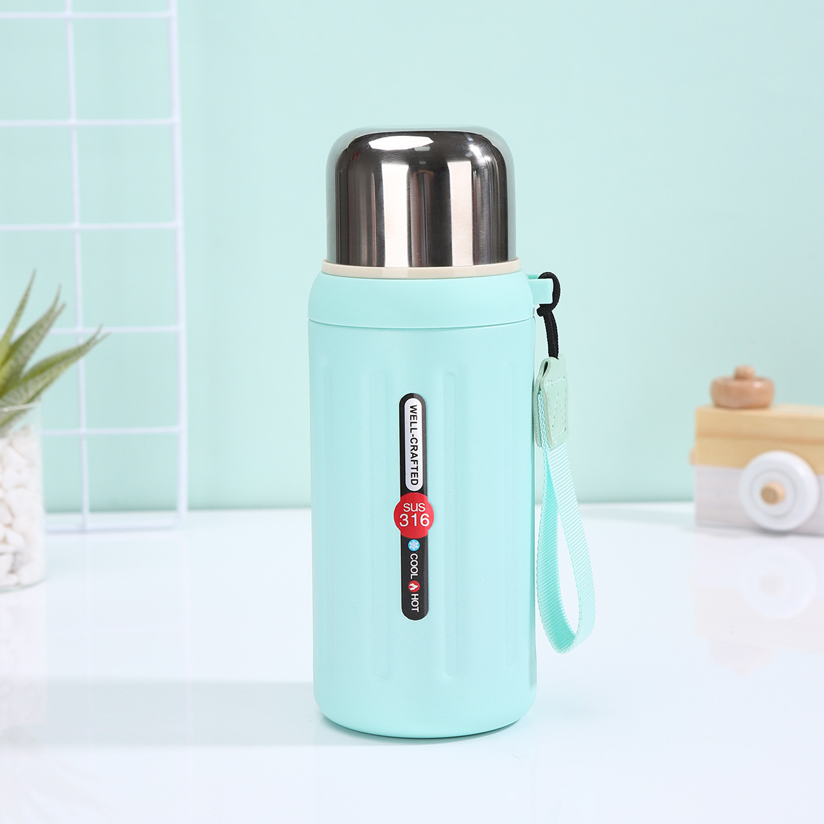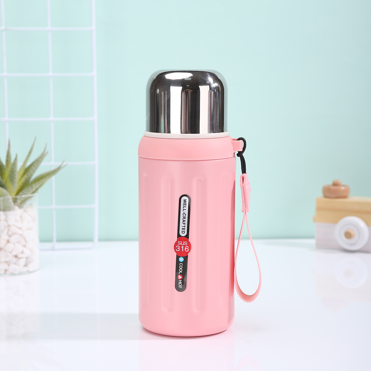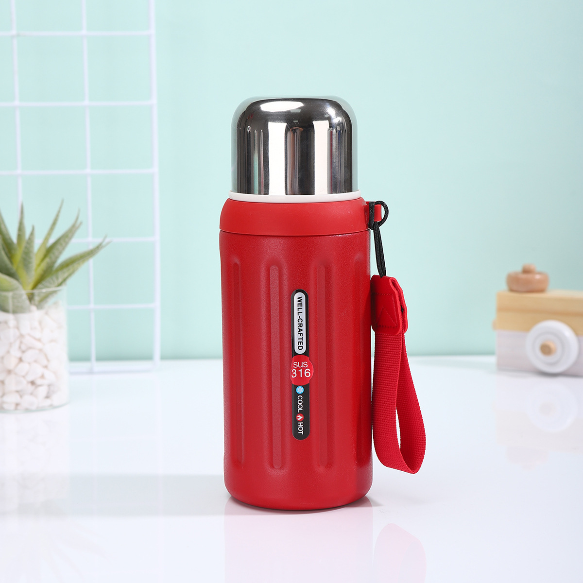 Carry History, Stay Hydrated: The Vintage Roman Column Insulated Water BottleEmbrace timeless style and uncompromising performance with our "Well-Crafted" vacuum-insulated water bottle. Inspired by the grandeur of ancient Roman architecture, its distinctive vertical ribbed texture makes a bold statement, while the premium SUS 316 stainless steel interior ensures pure taste and exceptional durability, outperforming common 304 steel. The advanced double-wall vacuum insulation maintains your drinks cold for up to 24 hours or hot for extended periods, making it perfect for hiking, gym sessions, or daily commutes. Each bottle comes with a contrasting, durable fabric carry rope for ultimate portability and features a secure, leak-proof screw-on lid. Available in a sophisticated palette of pastel blue, vibrant red, soft pink, and sleek black to match your personal style.Why This Flask Stands Out:- Superior Material & Craftsmanship: Built with food-grade SUS 316 stainless steel, known for superior corrosion and heat resistance, ensuring longevity and safety. The "Well-Crafted" promise is evident in every detail.
