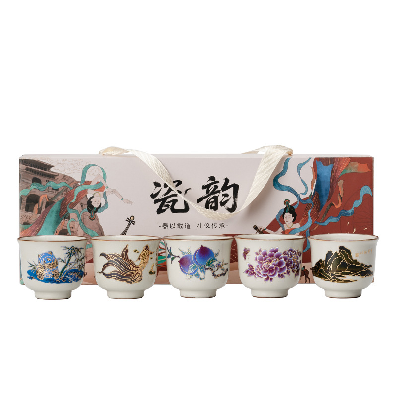 - Individual themed cups like "Golden Fish Full Hall," "National Beauty Peony," "Longevity Peach," and the majestic "Thousand Miles of Rivers and Mountains."