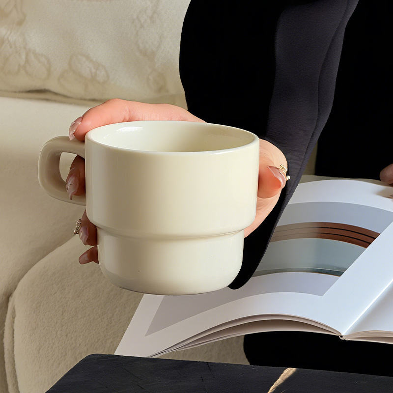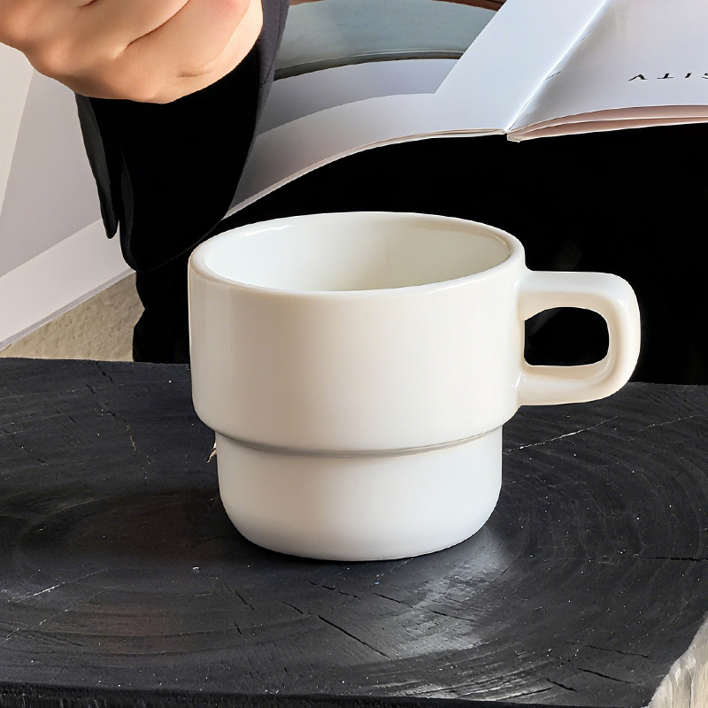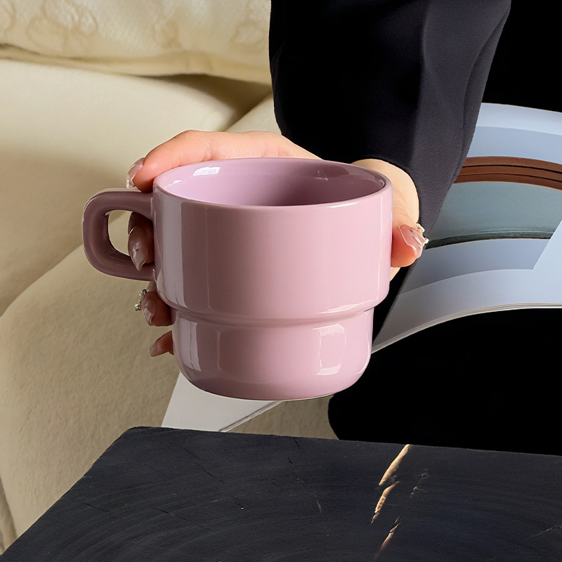 Brand: Jugge Home Material: Premium White Porcelain Set Includes: 4 Stackable Mugs Capacity per Mug: 320ml (approx. 10.8 oz) Weight per Set: ~520g Finish: High-Gloss Glaze (Cream, Pink, Blue, Purple, Black) & Matte (White) Key Features: Space-Saving Stackable Design, Microwave Safe, Heat Retaining Style: Modern Minimalist, Artistic Packaging: Simple Paper Box Customization: Logo Printing Available