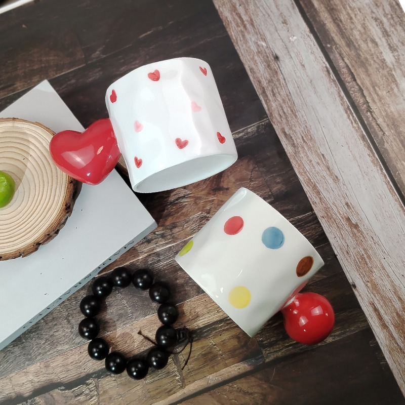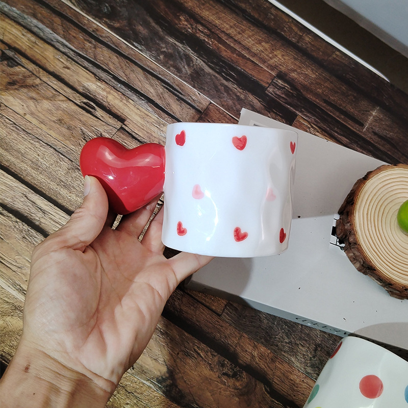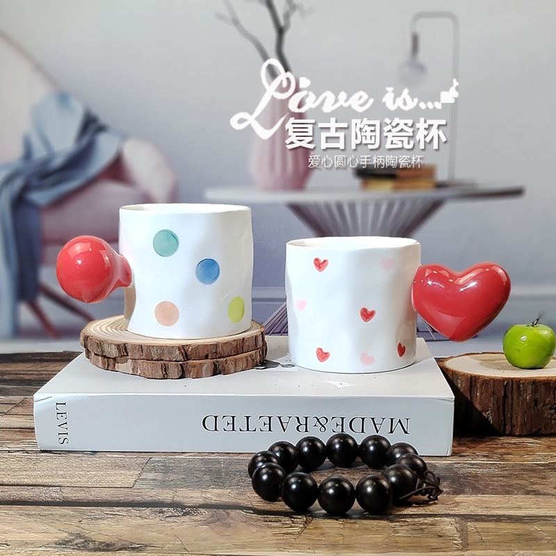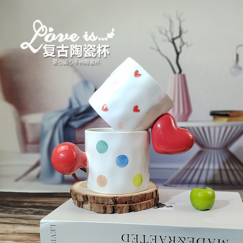 Love isn't just a feeling; it's in the details. Presenting the Ouyue Vintage Love Heart Ceramic Mugs, a pair that captures the timeless charm of romance in every curve and pattern. This exquisite set is designed to turn your daily coffee or tea ritual into a moment of heartfelt connection. Crafted with meticulous attention in Chaozhou, China—a region famed for its ceramic heritage—each 400ml mug is a sturdy, 550g testament to quality and artistry.Two Designs, One Beautiful Story:Choose the mug that speaks to your heart. The Heart-Handled Coffee Cup features a bold, sculpted red heart that you literally hold in your hand—a perfect, tangible symbol of affection. Its body is adorned with a playful scatter of tiny red and pink hearts. Its companion, the Round-Handled Polka Dot Mug, offers a subtler romance with a classic circular grip, its white canvas bursting with a joyful confetti of colorful polka dots. Together or apart, they are a stunning visual pair.More Than Mugs, They're Memory Makers:These are not just drinkware; they are heirloom-quality pieces for life's special chapters. Exceptionally versatile for gifting, they are the ideal choice for: