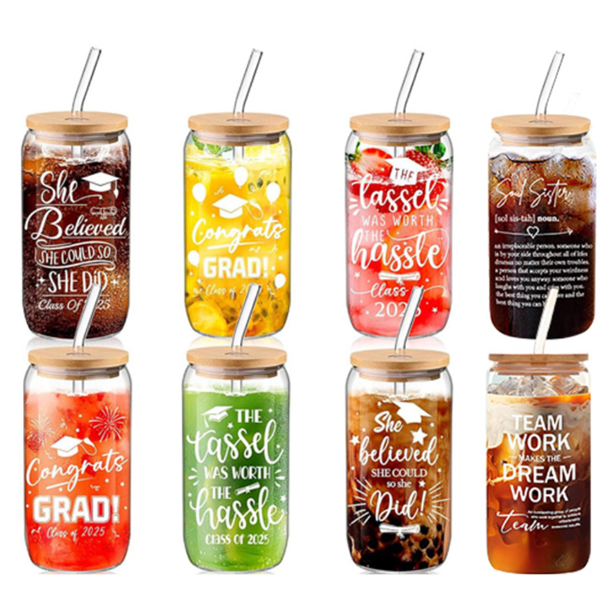 Discover the perfect blend of functionality and inspiration with our 16 oz customizable glass jars! Crafted from food-safe materials, these jars are ideal for both hot and cold beverages—from smoothies and iced coffee to herbal teas. The leak-proof bamboo seal ensures freshness, while the ergonomic design offers a comfortable grip. Whether you’re celebrating milestones, promoting eco-conscious living, or simply brightening someone’s day, these versatile jars are a must-have. Explore custom themed designs and make every drink a moment of positivity!