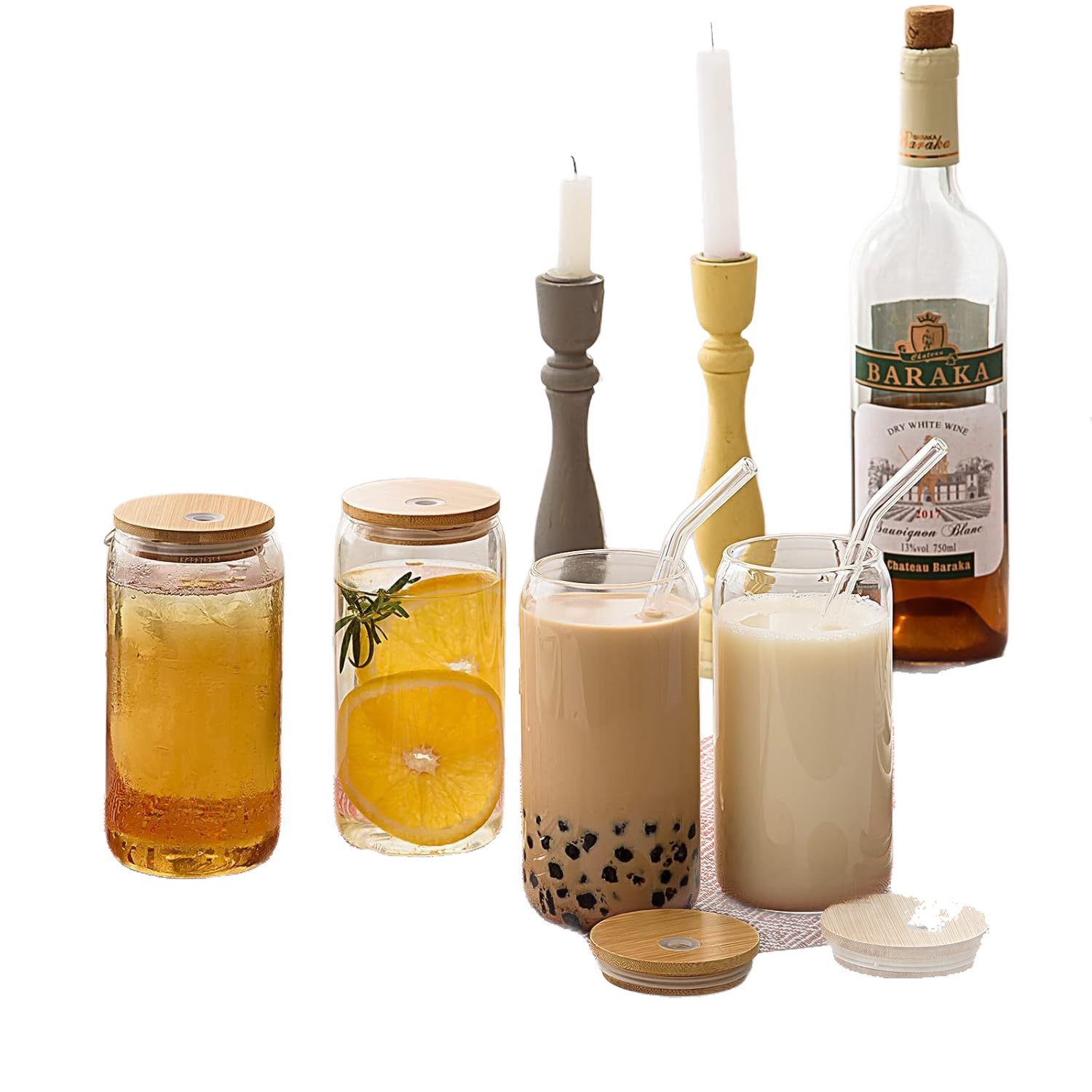 16 Oz Glass Jars with Bamboo Lid & Straw