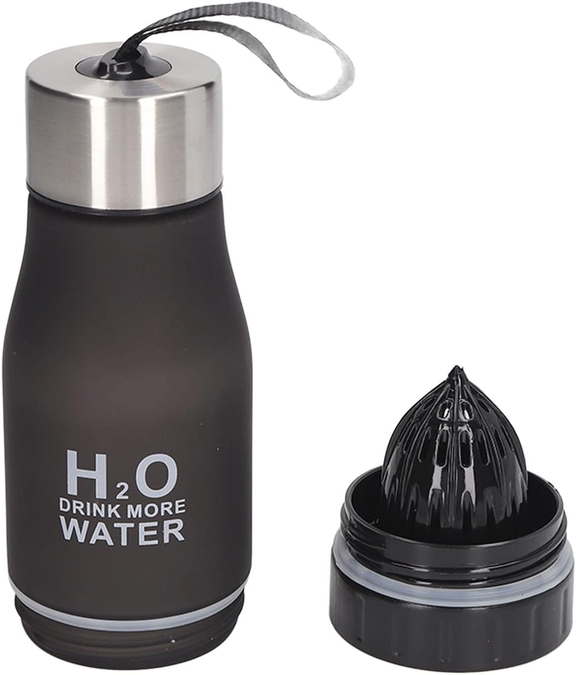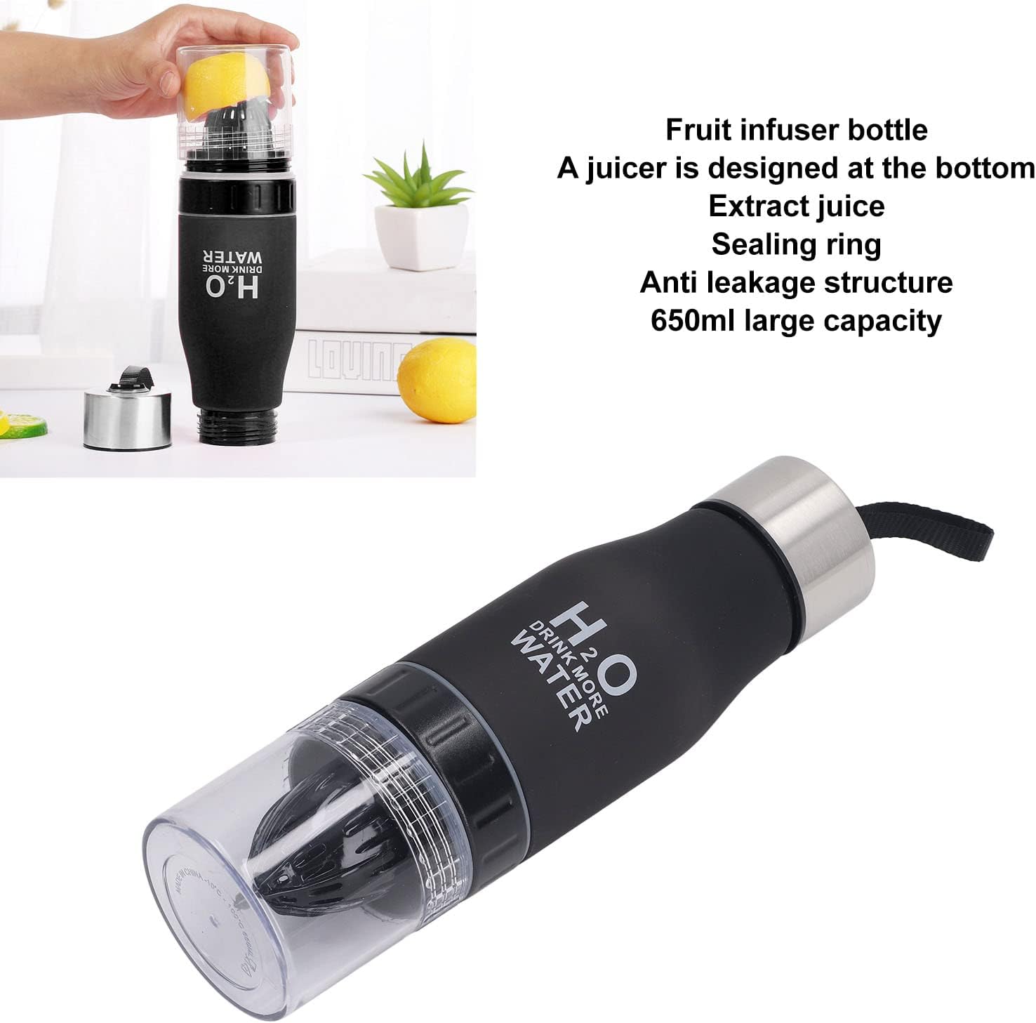 This bottle features a built-in manual citrus juicer at the base and a stylish frosted upper body with a metallic cap. The transparent lower chamber allows you to watch fresh lemon, lime, or fruit infusion while squeezing. The bottom juicer efficiently extracts fresh citrus juice as the top chamber infuses water with natural flavor. Equipped with a sealing ring and secure screw-top lid, it prevents leakage for worry-free use in gyms or offices. Available in six modern colors with matching juicers, its customizable frosted surface offers excellent branding opportunities, as shown in the images.