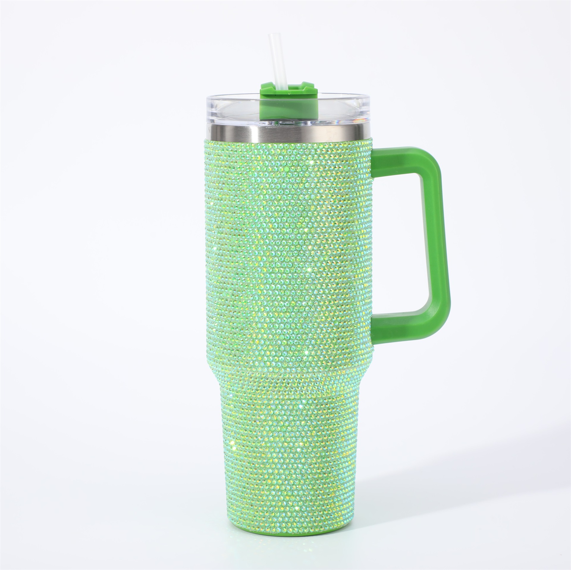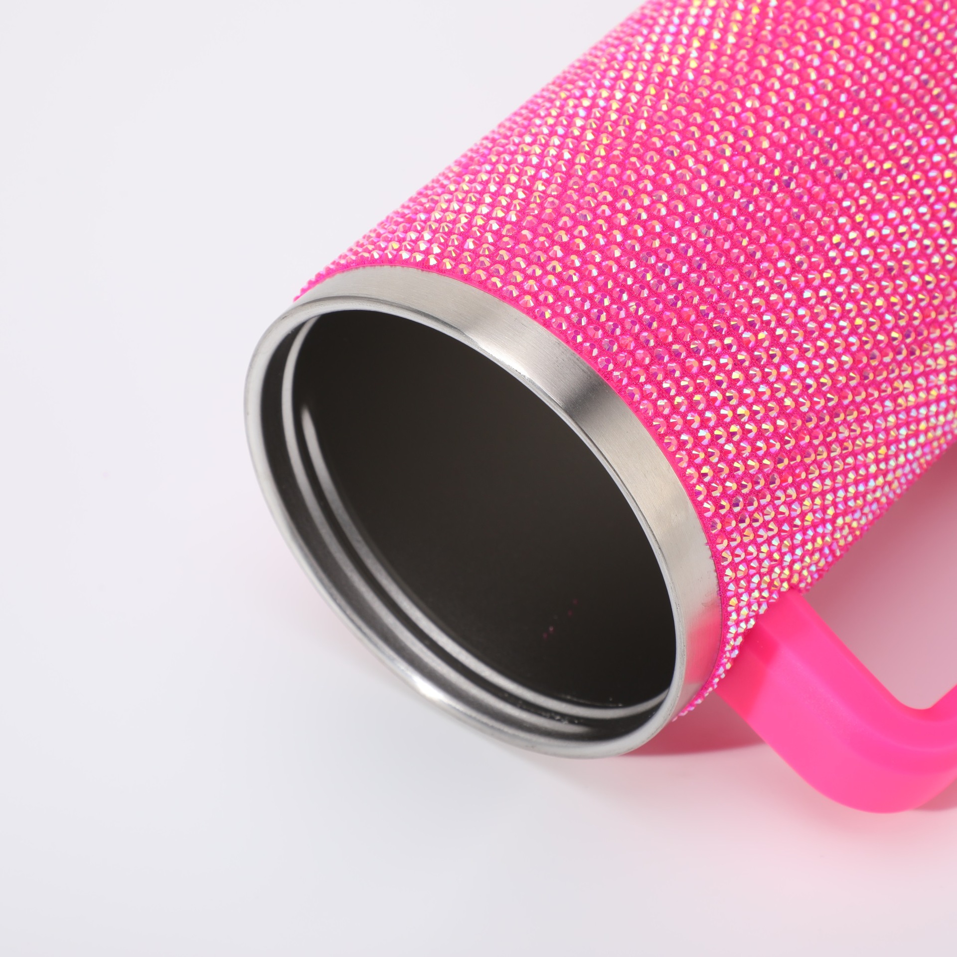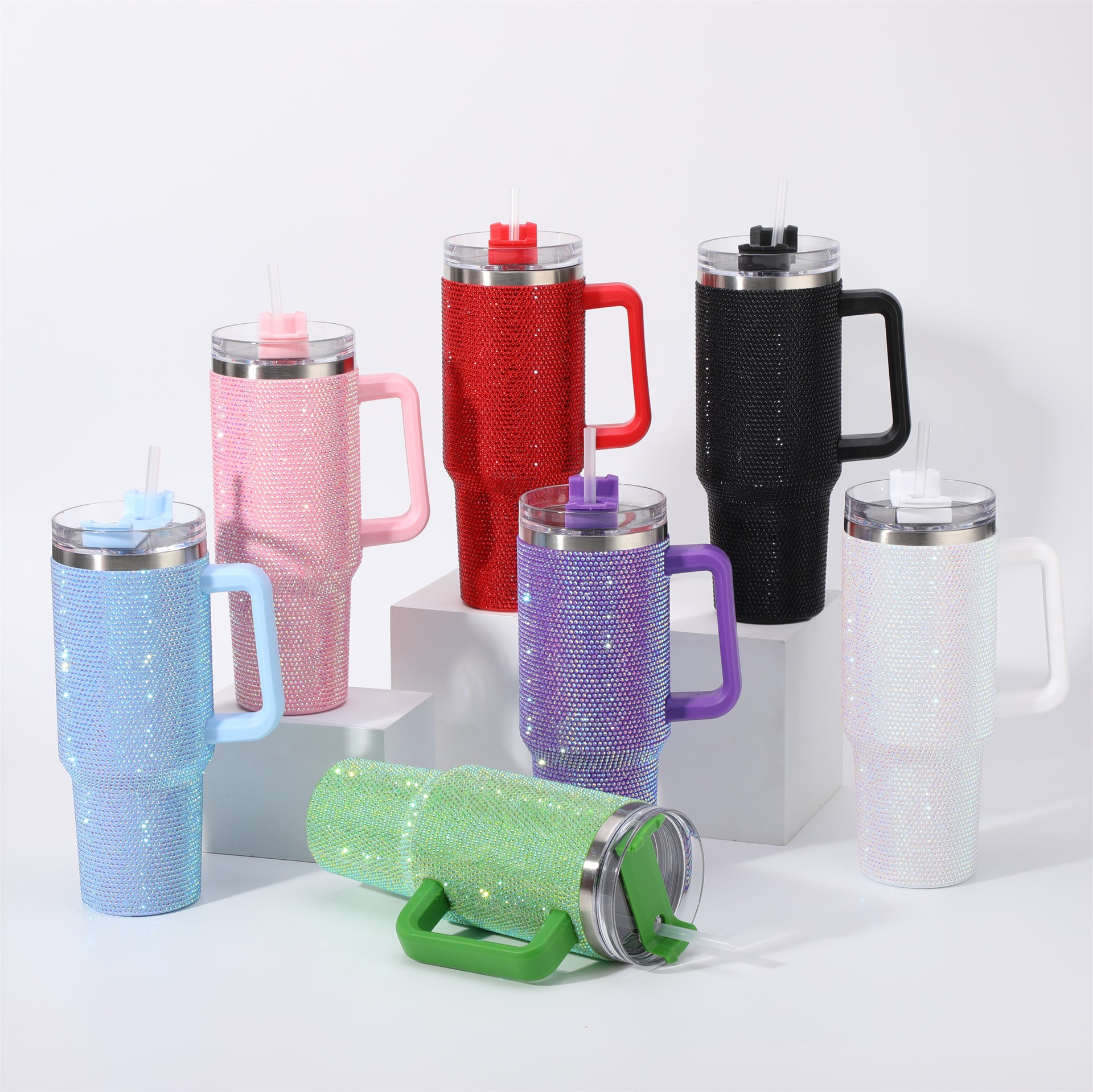 Dazzling Rhinestone Design: Hand-set crystals create a unique, sparkling aesthetic that turns heads. High-Performance Insulation: 304/201 stainless steel double-wall vacuum keeps beverages at the perfect temperature for hours. Ultra-Convenient: Features a sturdy carry handle and a sip-through straw lid for easy, on-the-go use. Massive 40oz Capacity: Perfect for all-day hydration without constant refills. Vibrant Color Options: 8 stunning glossy colors to match your personal style. Fully Customizable: Ideal for branding. Choose from heat transfer, laser engraving, 3D/5D printing, and more to add your logo or design.