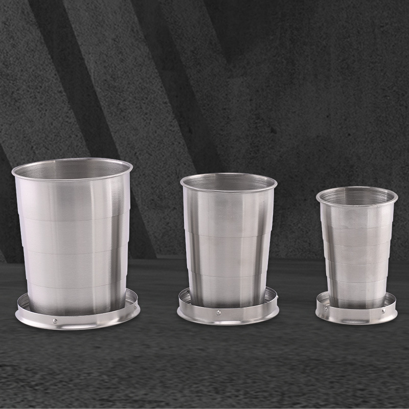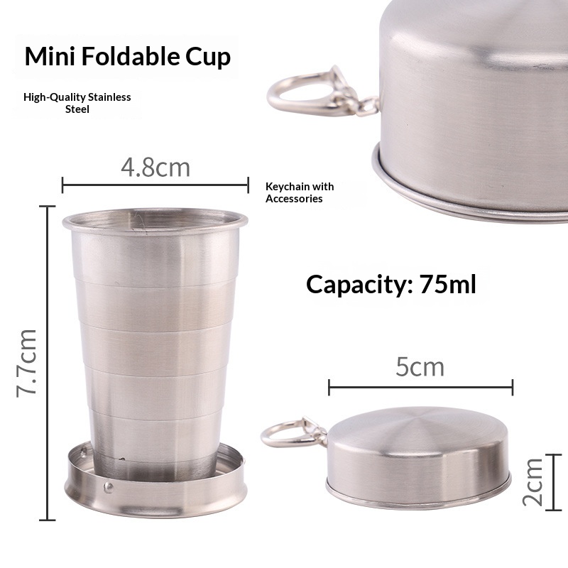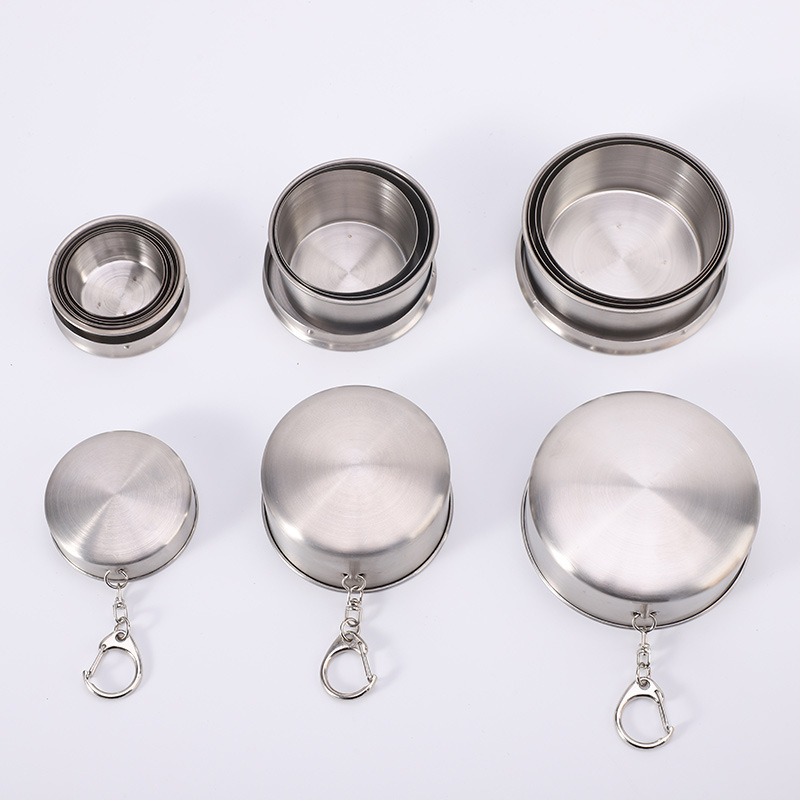 Ditch the Bulk, Not the Sip. Meet the Dailanqi Collapsible Cup – the ingenious solution redefining portable hydration. More than just a cup; it's a feat of smart, space-saving engineering designed for the modern explorer, traveler, and everyday minimalist. Whether you're hiking a mountain trail, navigating a business trip, or simply need a reliable cup on the go, this is your all-in-one drinking companion.Crafted with precision, this cup utilizes a unique telescopic folding design. With a simple push, it collapses from a full-size cup into a remarkably compact disc that fits in the palm of your hand. When expanded, it forms a sturdy, seamless vessel perfect for water, coffee, or a quick snack. Made from high-quality 201 or superior 304 stainless steel (inner and outer), it guarantees durability, easy cleaning, and a pure taste with every use. The included secure keychain allows you to attach it effortlessly to your backpack, belt loop, or keys, ensuring it’s always within reach.Choose Your Perfect Fit. We offer four practical sizes to match any need:
