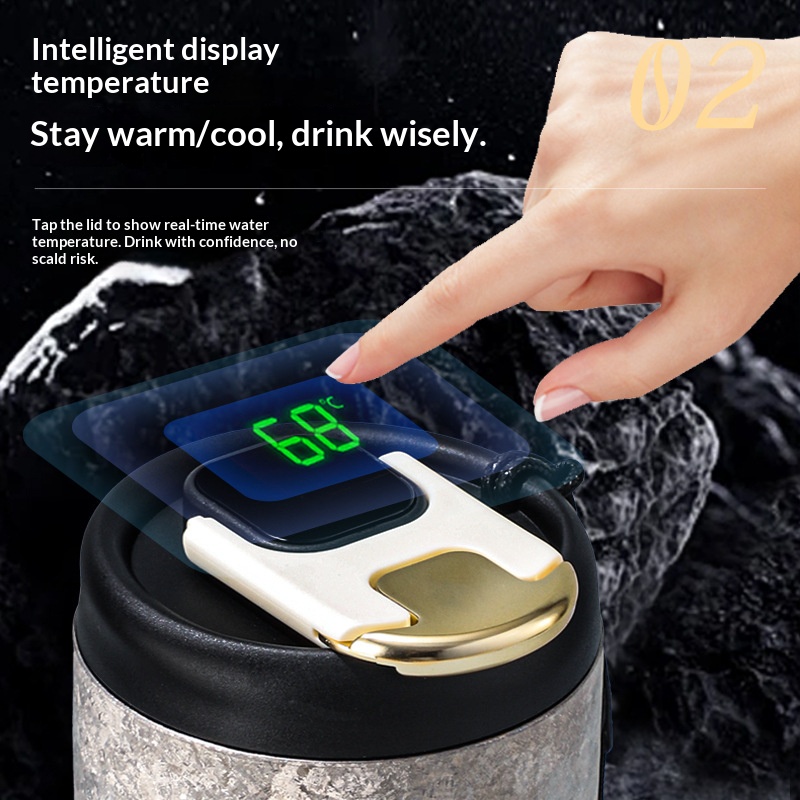Know Before You Sip. Never guess your drink’s temperature again. The integrated Smart Temperature-Display Lid provides real-time readings with a simple touch, showing you the exact heat of your beverage. This isn’t just convenient; it’s a safeguard against burns, ensuring every sip is perfectly timed and safely enjoyed. The display seamlessly integrates into the sleek, black lid, complemented by a refined gold accent.Engineered for the Modern Lifestyle. With 6-12 hours of reliable vacuum insulation, your morning brew stays hot for your commute, and your afternoon water stays refreshingly cold. The 420ml capacity is the ideal size for coffee lovers, while the secure, leak-proof lid (with a direct-sip opening) and the included carry rope make it the ultimate on-the-go companion for the office, gym, travel, or outdoor adventures.A Statement of Sophisticated Style. Choose from a palette of stunning, lustrous finishes: Ice Crystal Blue, Sea Pink, Peacock Green, Starry Silver, Classic Black, and Icy Purple. Each finish reflects light beautifully, embodying a modern, minimalist aesthetic that fits any setting, from a boardroom to a hiking trail.The Ultimate Gift of Consideration. More than a tumbler, it’s a thoughtful gesture. Presented in elegant packaging, it’s the perfect premium gift for clients, employees, mentors, or loved ones on birthdays, holidays, or as a corporate milestone award. We also offer custom logo services for businesses seeking a distinguished branded gift.