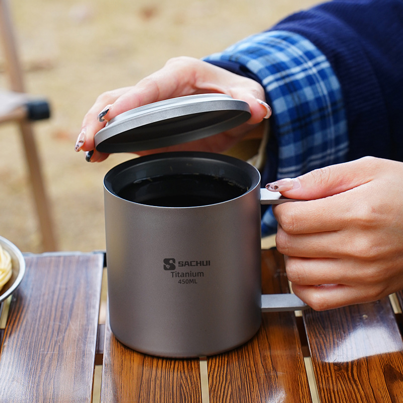 SACHUI Pure Titanium Double-Wall Mug | 450ml, Ultra-Light, Lifetime Insulation, 100% Taste-Pure