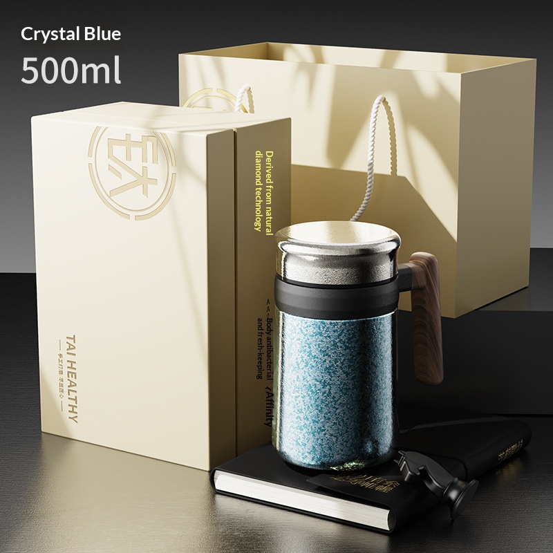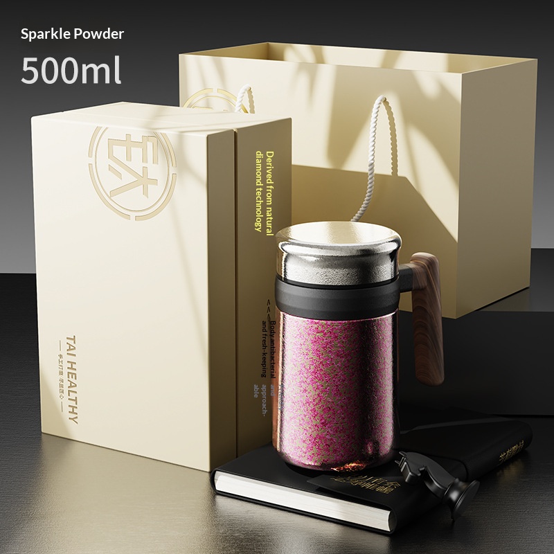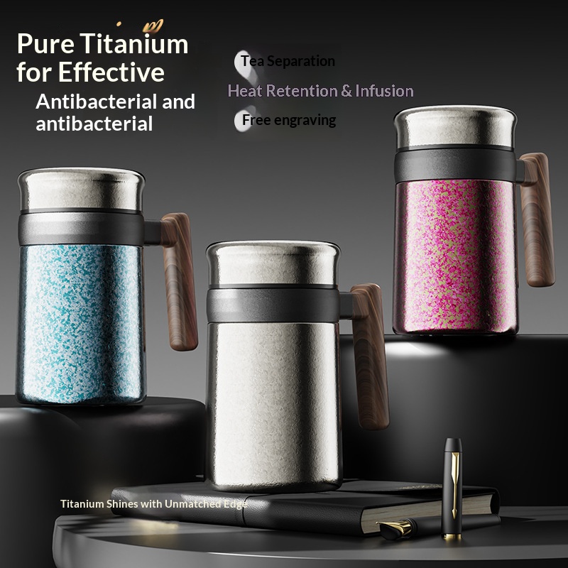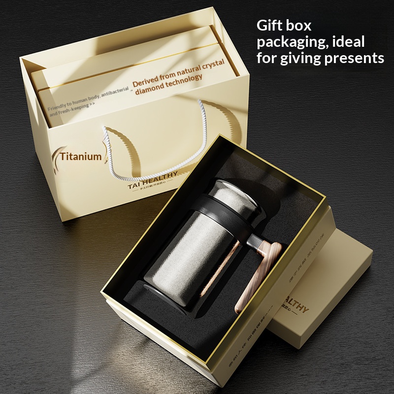 Your Office, Elevated. The Pinnacle of Purity, Crafted in Titanium.Introducing the TAI HEALTH Pure Titanium Executive Mug, where unparalleled material science meets timeless design. More than a travel mug, it's a statement of discernment for the modern professional. Crafted entirely from pure titanium—both inner and outer walls—it delivers a drinking experience in its most authentic form: 100% taste-neutral, naturally antibacterial, and free from any metallic aftertaste. Your single-origin coffee, delicate green tea, or infused water tastes precisely as nature intended.Engineered for the Connoisseur's Ritual. The integrated, finely perforated pure titanium tea infuser allows for perfect tea-water separation, giving you complete control over steeping time to unlock nuanced flavors without bitterness. The advanced double-wall vacuum insulation technology maintains your beverage at the ideal temperature for 6-12 hours, ensuring your morning brew stays hot through back-to-back meetings and your afternoon refreshment stays chilled.Designed for Sophistication and Comfort. Choose from three lustrous, jewel-toned finishes: the sleek "Sparkling Silver", the deep "Sparkling Blue", or the elegant "Sparkling Pink". Each mug features an ergonomic, natural wood-grain handle that provides a secure, comfortable grip and adds a touch of warm, organic texture to the minimalist titanium body. The secure screw-top lid guarantees leak-proof portability.The Ultimate Token of Appreciation. Presented in a luxurious, two-piece gift box with gold foil detailing, this mug requires no additional wrapping. It is the definitive choice for premium corporate gifting, executive rewards, client appreciation, or commemorative milestones. We offer custom laser engraving services, allowing you to add a personalized message or company logo, transforming it into a cherished, branded heirloom.
